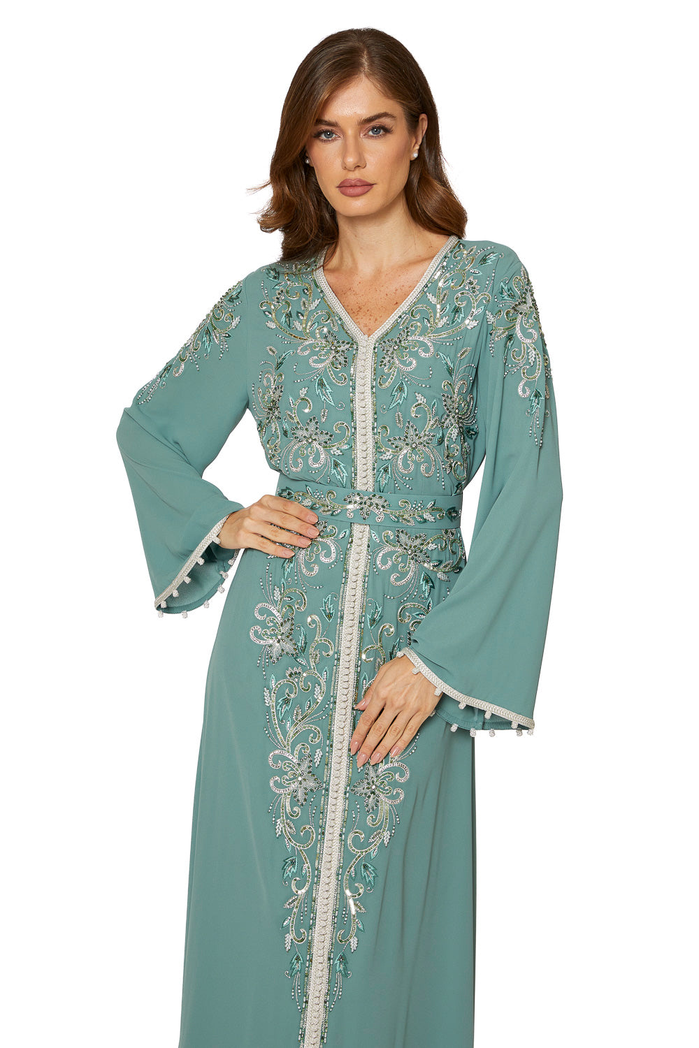 هذا القفطان المغربي، ELM M 613، يُبرز تطريزًا بارعًا على أقمشة فاخرة، مُجسّدًا اندماجًا سلسًا بين التراث والحرفية الراقية. صُمّم للمناسبات المميزة، ويتميز بتصميم أنيق يُكرّم التقاليد ويمنح أناقة استثنائية. مثالي لمن يبحث عن قطعة مميزة تجمع بين العمق الثقافي والأناقة الخالدة.