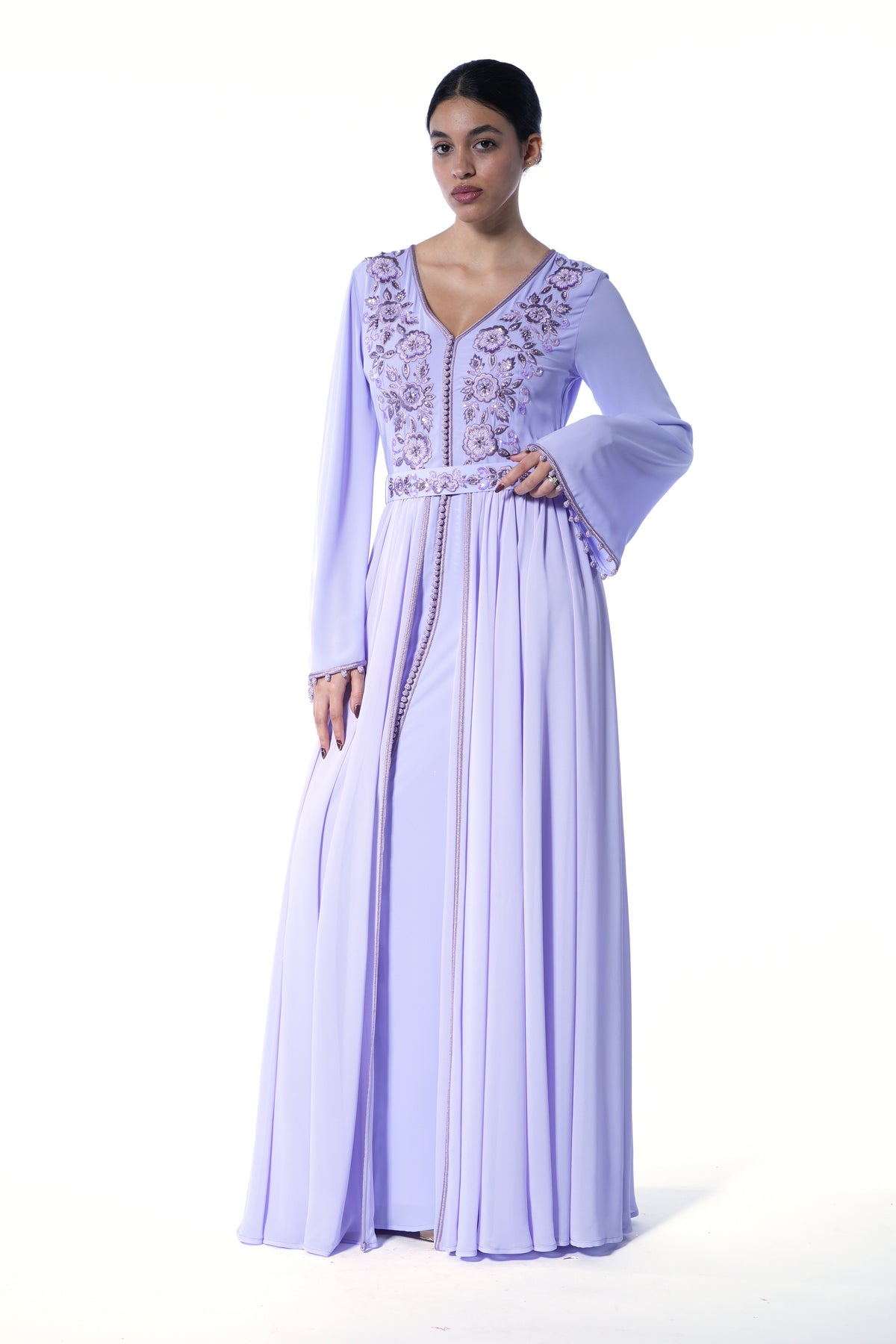 Elevate your special occasions with the ELM M 624 Moroccan caftan, meticulously crafted with intricate embroidery and premium fabrics. This garment seamlessly merges traditional craftsmanship with refined elegance, offering a sophisticated look that honors heritage while enhancing your presence with timeless style.