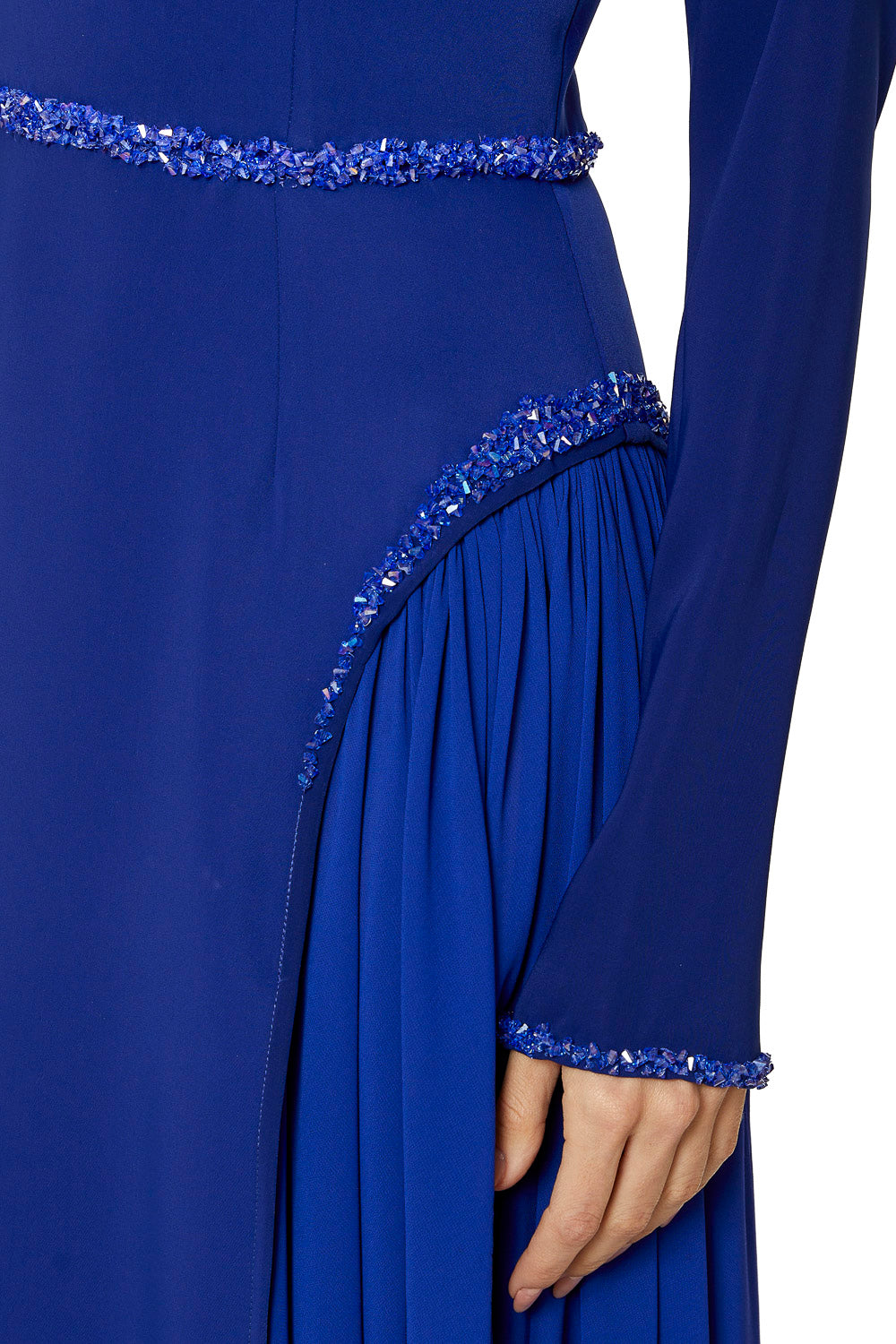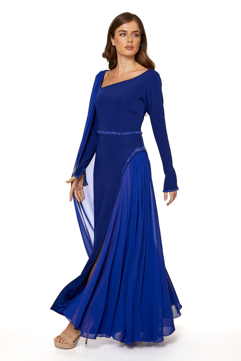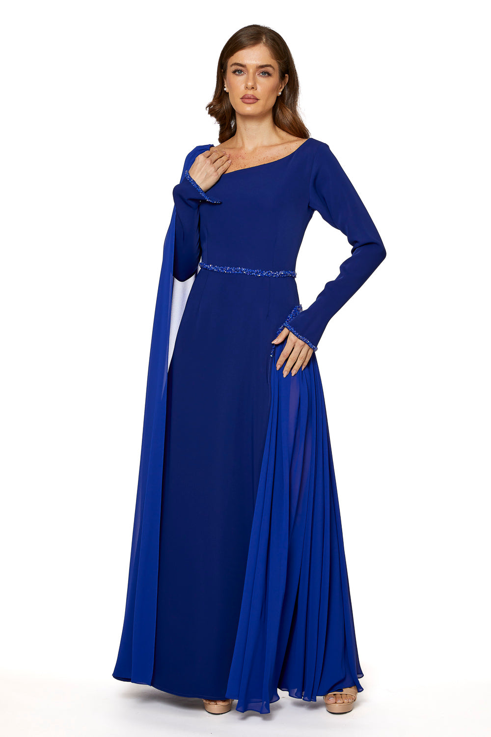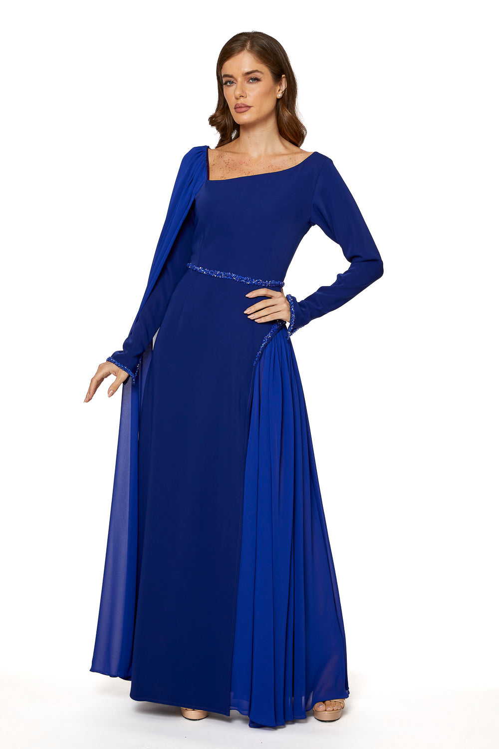 تجمع مجموعة "إليجانس لا مود" بين الحرفية الراقية والأناقة متعددة الاستخدامات. هذا التصميم، المصنوع من الكريب الناعم عالي الجودة والشيفون الفاخر، يوفر لكِ سيدتي راحة استثنائية مع الحفاظ على أناقة لا مثيل لها. إضافة زخارف الكريستال على الخصر والأساور تضفي لمسة من الأناقة الراقية على أي إطلالة. خيار مثالي لمن يقدرن الرقي والجودة.