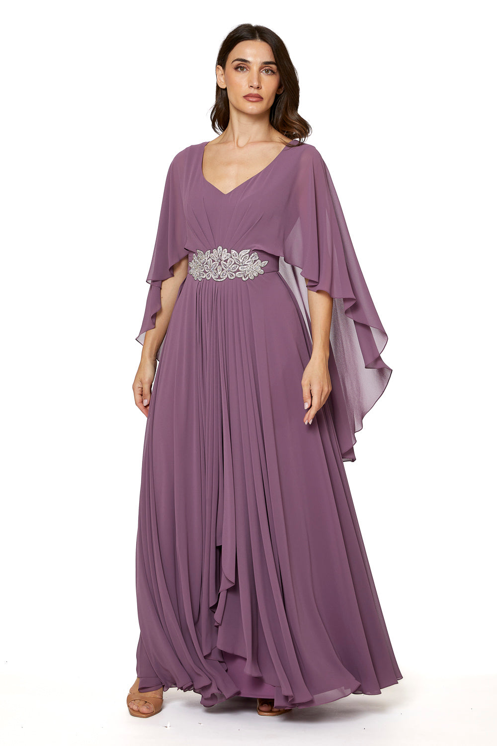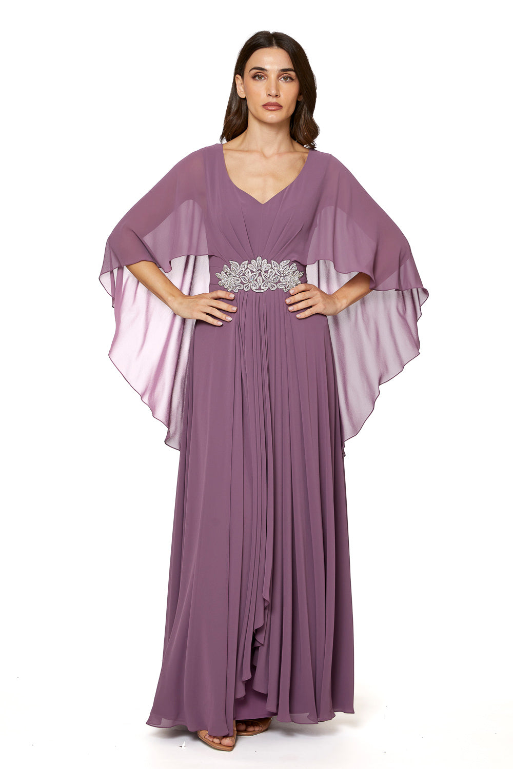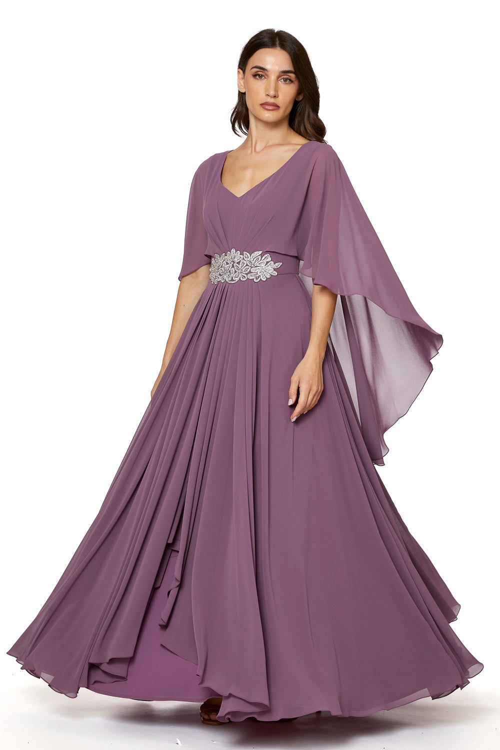 This evening dress made from high-quality chiffon, which offers you exceptional luxury look. The addition of crystal design at the bellt add a touch of elegance to the look. It’s a perfect choice for those who loves to have an elegent look and appreciate sophistication and quality